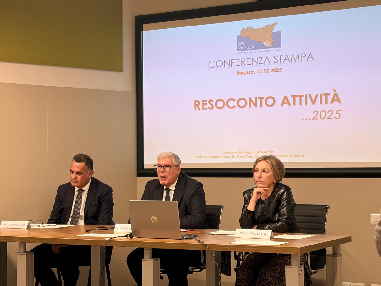 Si è tenuta questa mattina, all’ASP di Ragusa, una conferenza stampa durante la quale il Direttore generale, Giuseppe Drago, ha illustrato una relazione sull’attività svolta nel 2025, tracciando un quadro dei risultati raggiunti e degli interventi attivati e futuri. All’incontro coi giornalisti hanno partecipato il Direttore sanitario, Sara Lanza, e il Direttore amministrativo, Massimo Cicero.