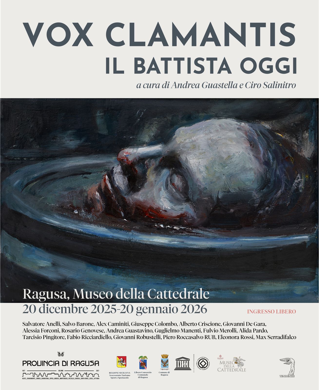 Un dialogo tra diciotto artisti contemporanei e alcune opere d’arte dedicate al Battista, dalla Decollazione del Battista di Caravaggio, alla Testa del Battista di Paolo e Cesare Aversa, al bastone vescovile della Diocesi iblea del Cambellotti. Un viaggio nell’arte contemporanea, quello della mostra “Vox Clamantis. Il Battista oggi”, a cura di Andrea Guastella e Ciro Salinitro, che sarà inaugurata sabato 20 dicembre, alle ore 17.30, presso gli spazi espositivi del Museo della Cattedrale di Ragusa.
