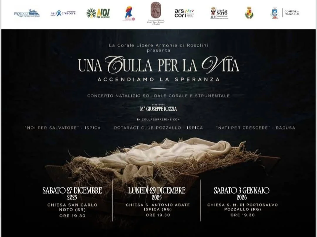 Dopo i momenti di assoluto prestigio palermitani e romani che hanno ampliato il suo già lungo e apprezzatissimo curriculum, la corale rosolinese "Libere Armonie", guidata dal maestro Giuseppe Iozzia,,ha previsto nel programma definitivo per l'offerta a cavallo tra Natale e l'Anno Nuovo tre appuntamenti, tutti alle 19,30 e tutti presentati da Eleonora Cannizzaro. Dopo l'apertura del 27 dicembre segnata dal concerto nella chiesa San Carlo a Noto, la serata netina sarà seguita da quelle in calendario per il 29 dicembre a Ispica nella chiesa di S. Antonio e dalla esibizione finale di saluto al 2026 del 3 gennaio, fissata a Pozzallo nella chiesa di S. Maria di Portosalvo. Ad accompagnare la corale Salvatore Fronte e Stefano Cianci al pianoforte, Lucia Vernuccio e Paolo Rizza alla chitarra, Chiara Nigro al flauto, Giuseppe Valenti alle percussioni, il Liberty Brass Quintet con Rosacarmen Lorefice solista. Per questa "stagione delle Feste", le già ben note e più volte ribadite dal costante gradimento degli spettatori qualità di "Libere Armonie" e del suo direttore, come sempre supportate dalla qualificata combinazione di tecnica, virtuosismi e da una suggestiva varietà di scelte in chiave di unione solidale tra etnie e popoli, potranno contare anche su di una nuova, coinvolgente "aggiunta" di grande significato nell'ottica di cooperazione solidale con le associazioni "Nati x crescere" e "Noi per Salvatore" e il Rotaract Pozzallo - Ispica. Nel quadro del' iniziativa-progetto "Una culla per la Vita", grazie a una entusiasta decisione unanime dell'intera corale e del suo direttore, i proventi dei tre concerti saranno, infatti, finalizzati all'acquisto di una termoculla da destinare all'Ospedale Giovanni Paolo II di Ragusa, in memoria di un giovane ispicese, Salvatore Lorefice, spentosi prematuramente, e tragicamente, per sua stessa volontà. La nuova, significativa quanto apprezzabile, dimostrazione di sensibilità da parte della corale "Libere Armonie". testimonia anche della sua sentita, meritoria attenzione al sociale.